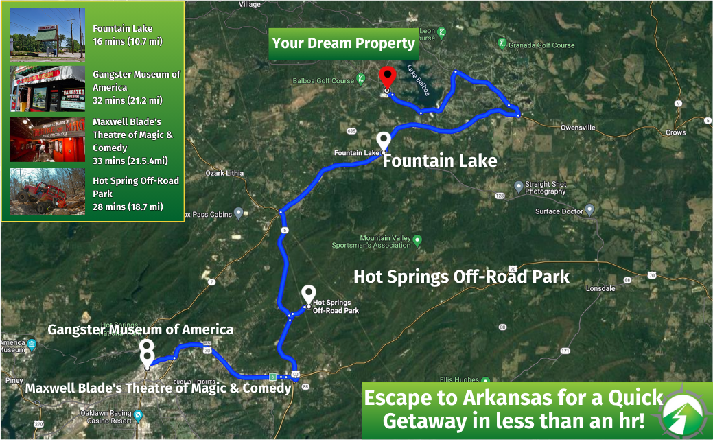 Nestled within the tranquil woods of Hot Springs Village, this .28-acre property on Casino Way is a rare gem for anyone seeking an affordable investment or the perfect spot to build a dream home. With attractions like the historic Hot Springs National Park and the relaxing Quapaw Baths and Spa just an 18-minute drive away, you're never far from a restorative retreat into nature or a dip into the soothing thermal waters. Add the excitement of Oaklawn Racing Casino Resort, family fun at Magic Springs Theme and Water Park, and the educational explorations at Mid-America Science Museum into the mix, and you've got a location that's as entertaining as it is serene. Whether you’re a golf enthusiast, a nature lover, or someone who appreciates the arts and history at places like The Gangster Museum of America, this property places it all within your reach. Plus, with Lake Ouachita's vast waters nearby, endless days of fishing, boating, and lakeside leisure await. Secure this slice of Arkansas heaven and enjoy both seclusion and convenience in a community that celebrates the great outdoors.
