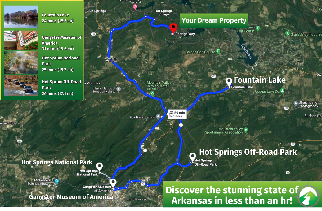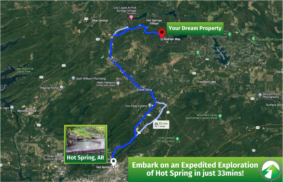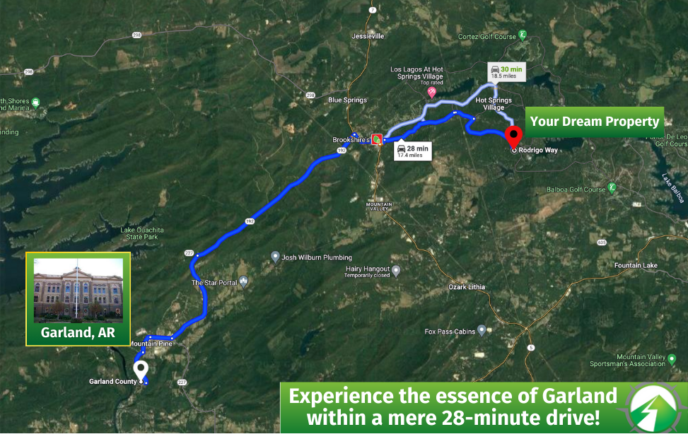 Located off the scenic Rodrigo Way, this plot boasts a prime location in the heart of Garland County. With Hot Springs National Park just a short drive away, nature's splendor is your daily backdrop. Enjoy proximity to cultural gems like the Gangster Museum of America, or take a leisurely drive to Fountain Lake. Whether it's a quick trip to vibrant Little Rock or a relaxing day at the nearby lakes and parks, everything you need is within reach.