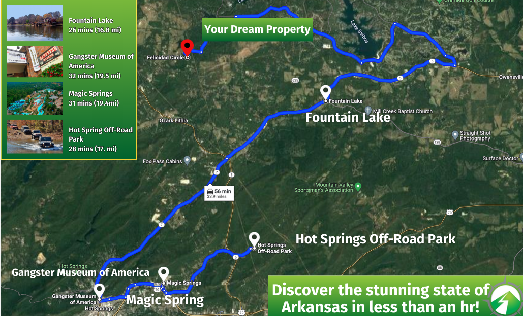 This accessible lot boasts a prime Garland County location, moments away from the rejuvenating thermal waters of Hot Springs and within an hour of Little Rock's metropolitan vibe. Surrounded by local favorites like Lake Ouachita, Magic Springs Theme and Water Park, and the greens of Ponce De Leon Golf Course, your new home will be the launchpad to Arkansas’s finest attractions.