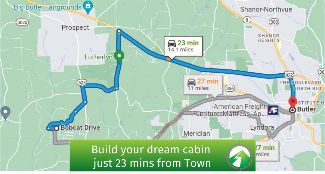 Conveniently located within 15 minutes of Evans City, PA, 25 minutes of Butler, PA, and just an hour away from Pittsburgh, PA. Situated within miles of numerous state game lands and nature preserves, this property offers easy access to town, work, or the store while providing the tranquility you dream of.