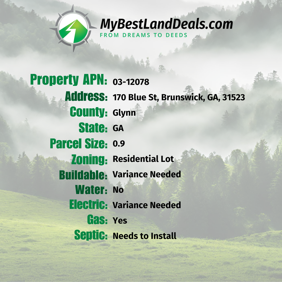 Dive into real estate investment in Glynn County with this prime 0.9-acre Brunswick, GA land, a golden opportunity at MyBestLandDeals. Ideal for investors aiming to capitalize on the tiny home and cabin market, this parcel offers significant growth potential in a thriving area. With its blend of natural beauty and proximity to urban amenities, it’s perfectly positioned for high-demand residential development or a lucrative vacation rental project. This property not only promises a return on investment through capital appreciation but also taps into the growing trend of sustainable living, making it a smart choice for forward-thinking real estate investors.