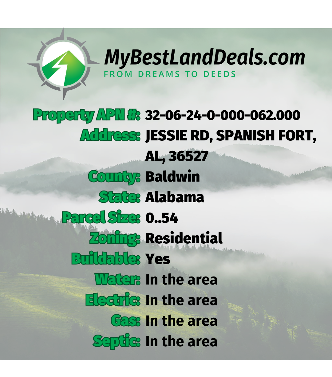 Welcome to a unique opportunity in Spanish Fort, Alabama. MyBestLandDeals.com is excited to present this .54 acre parcel of land, a real treasure located near the heart of Malbis, Spanish Fort, and just a short drive from Mobile. Surrounded by a vibrant mix of shopping, dining, and entertainment options, and with convenient access from McFarland Rd, this property is perfectly poised for anyone looking to invest in or build their dream home in a thriving community.