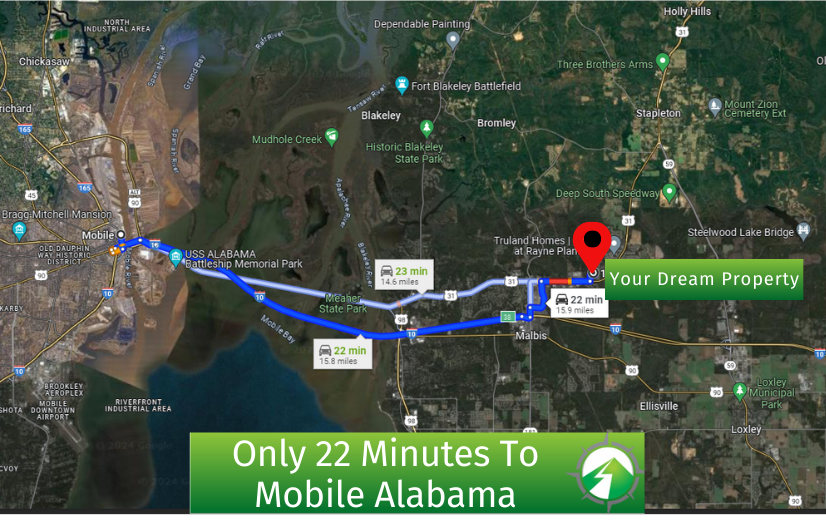 This property is ideally located off of McFarland Rd, ensuring easy access and excellent connectivity to the surrounding areas. It’s a stone's throw away from Malbis and the heart of Spanish Fort, and a short drive to the bustling city of Mobile. Whether you're shopping at Eastern Shore Center, picking up groceries at Publix or Rouses Market, or enjoying nature at Historic Blakeley State Park and Spanish Fort Town Center Park, everything you need is within reach. The close proximity to main roads makes securing an easement for access straightforward.