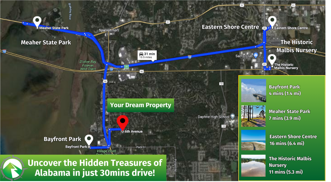 Perfectly positioned for tiny home enthusiasts or those dreaming of a simpler life, this .41-acre parcel in Daphne, AL, offers a peaceful yet connected lifestyle. Just moments from the vibrant city of Mobile and the charming communities of Spanish Fort and Malbis, this property is a commuter’s dream, blending easy access to city amenities with the serene backdrop of coastal Alabama. Enjoy leisurely weekends exploring the nearby Bayfront Park, or immerse yourself in the natural splendor of Meaher State Park. This lot provides a rare opportunity to build your minimalist haven in a locale where convenience meets the calming retreat of nature.